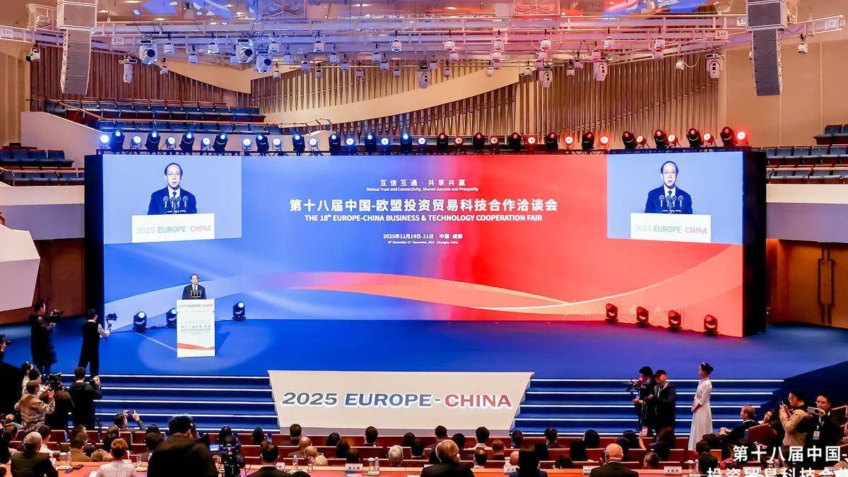 11月20日,第十八届中国-欧盟投资贸易科技合作洽谈会在成都开幕,来自20多个国家的600余名政商学界嘉宾参会。