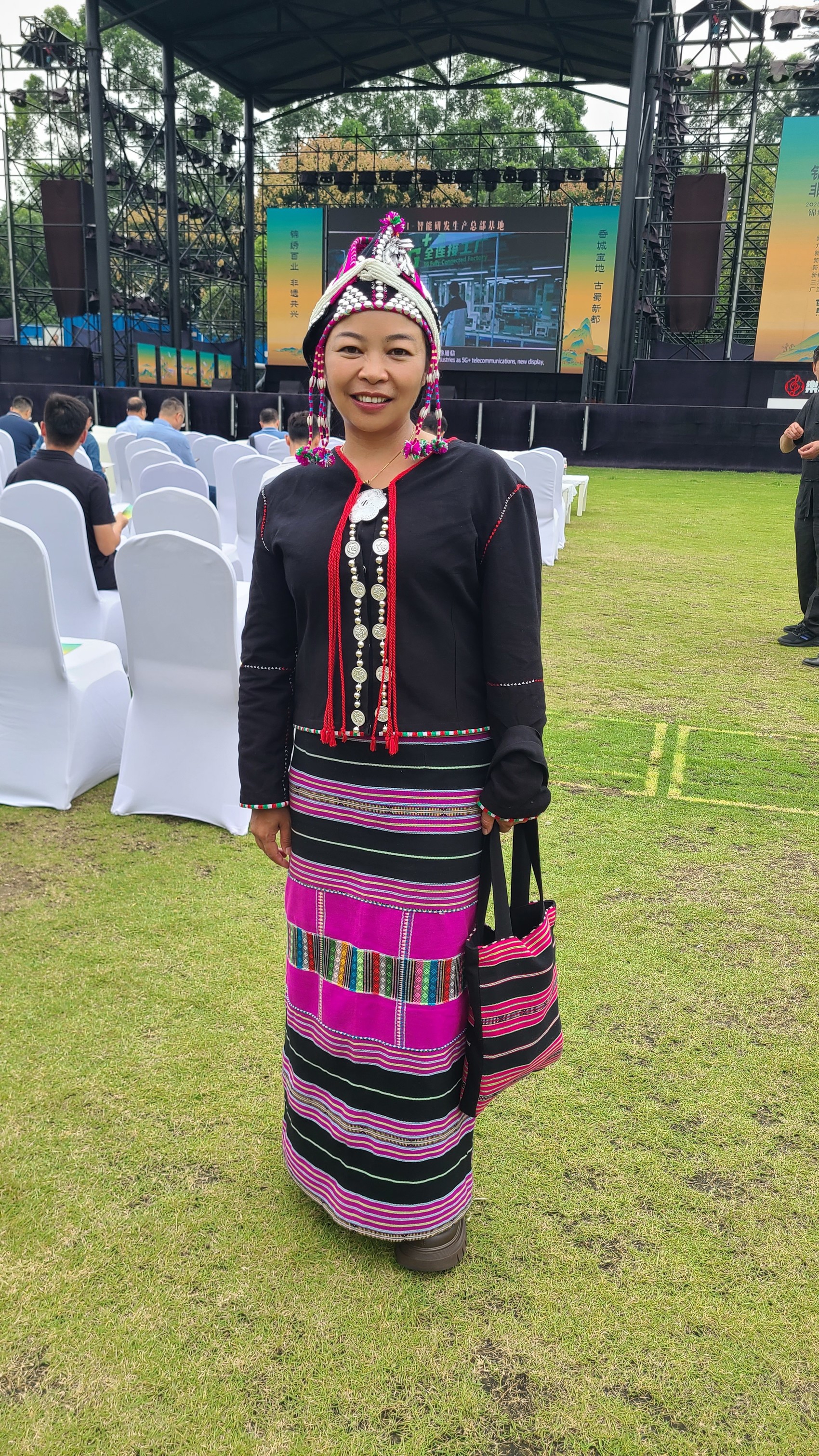 当天,来自云南西盟县的非遗传承人娜香穿着自己织就的佤族服饰,接过金底红字的“锦绣联盟”牌匾。