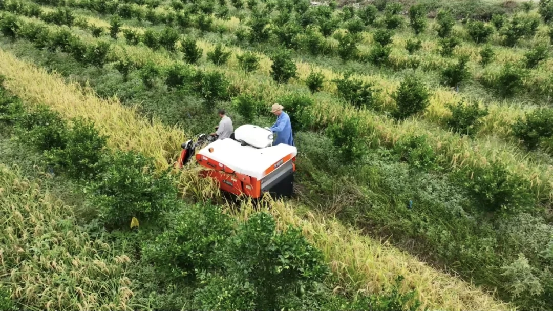 “没想到,林下一度闲置的空地,不但可节约除草费用,还增收这么多的稻谷!”该片柑橘林业主委托种植方负责人毛远超高兴地说。