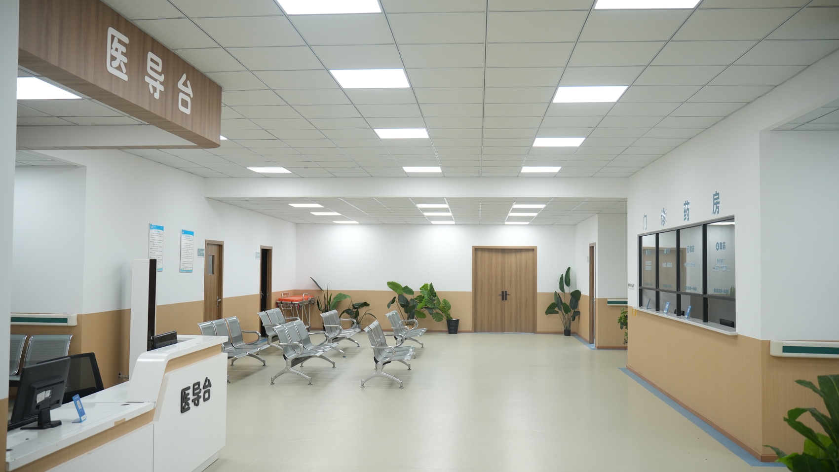 尹彬洁先带记者走进一个室内医院拍摄场景。约五百多平方米的场景中,护士长站、导医台、药房、休息区、手术室等细节一应俱全,还原度堪比真实医院。