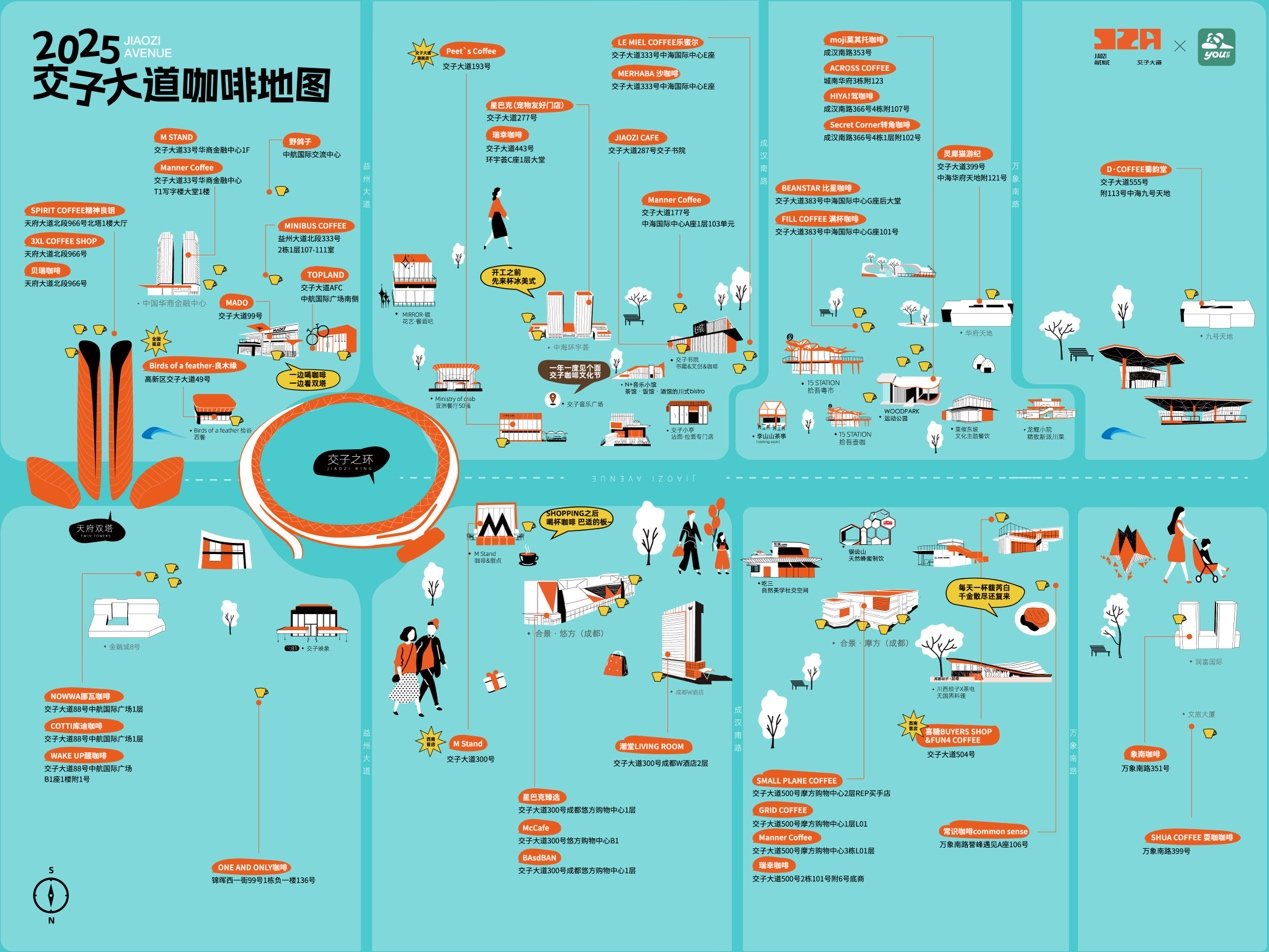 当天,《2025交子大道咖啡地图》首发,一图解锁交子大道的成都味道。此外,现场还设置了咖啡风味挑战、咖啡DIY、咖啡杯叠杯等多项互动体验环节,以及市集游园集章活动。