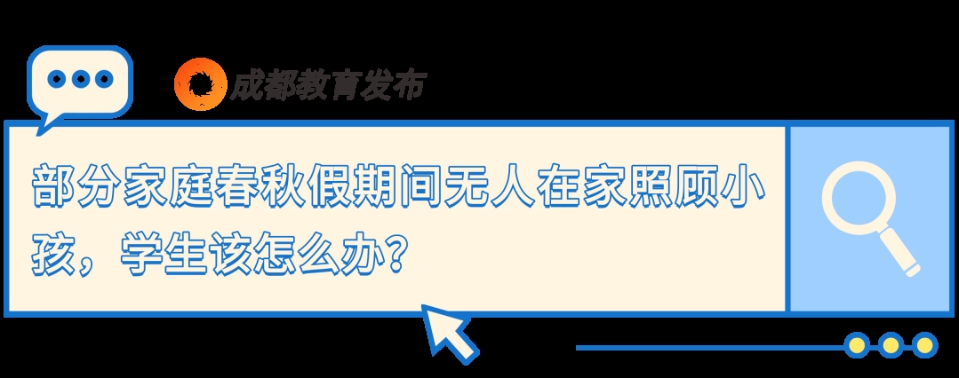 鼓励各区(市)县社区党群文化中心、少年宫、文化宫、儿童之家等场所,为春秋假期间未能出行的学生就近就便提供公益托管服务。