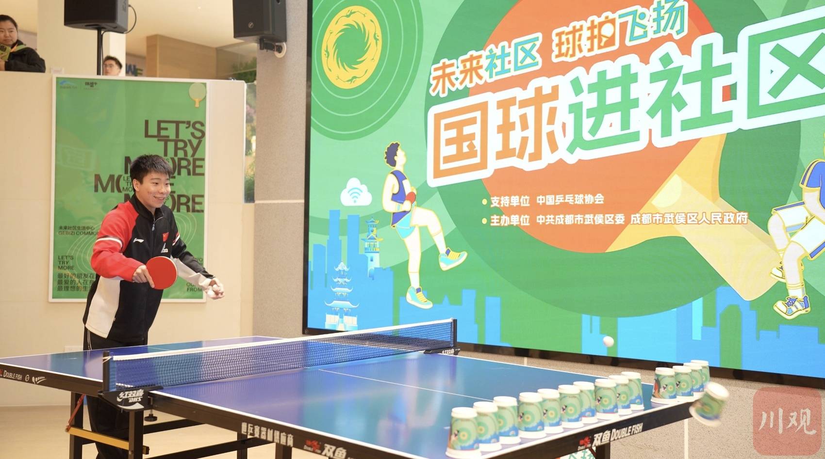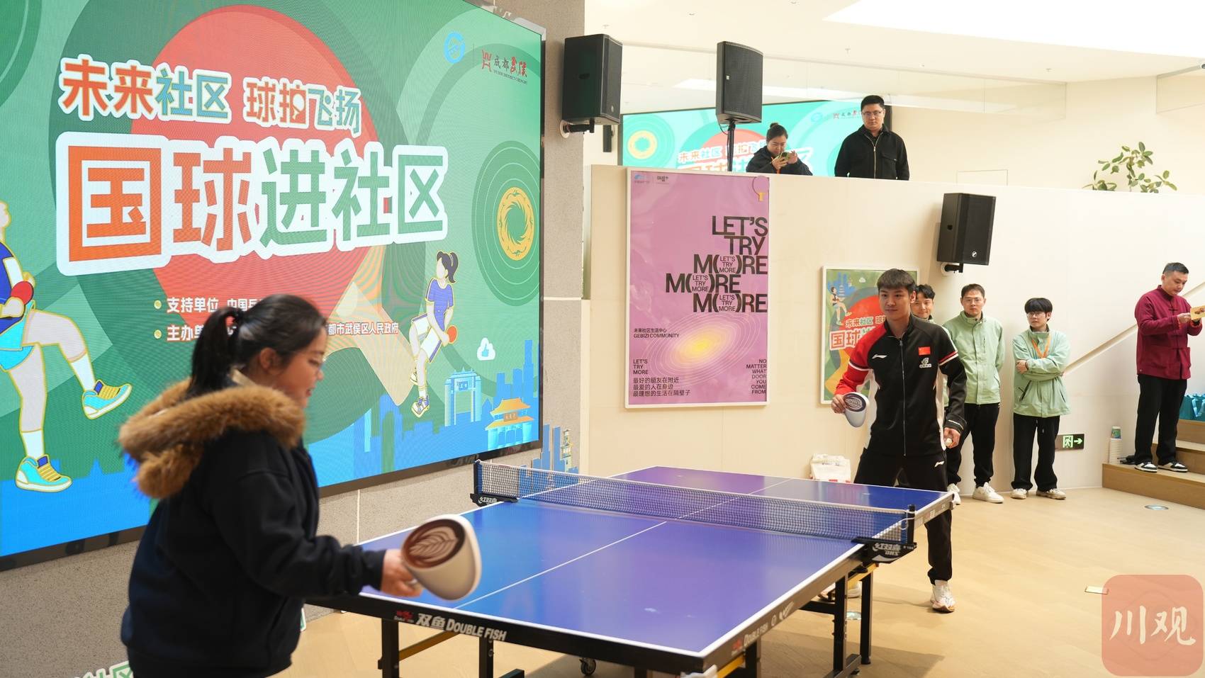 11月30日至12月7日,2025年成都国际乒联混合团体世界杯将在成都举行。11月27日,中国乒乓球队运动员王曼昱、林诗栋、徐瑛彬、薛飞、徐奕、陈熠现身成都武侯,在“隔壁子”未来社区生活中心与社区居民零距离互动。