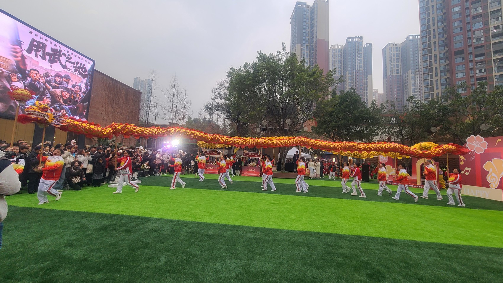 主会场东山音乐广场同样热度不减。下午和晚间两场文化惠民演出接连上演,既有国潮古风民乐演奏的婉转悠扬,也有现代舞的动感活力。由成华区民间文艺队伍带来的传统舞龙、非遗民俗等节目,更展现了深厚的群众文化基础和质朴的热情,赢得了市民游客最热烈的喝彩。
