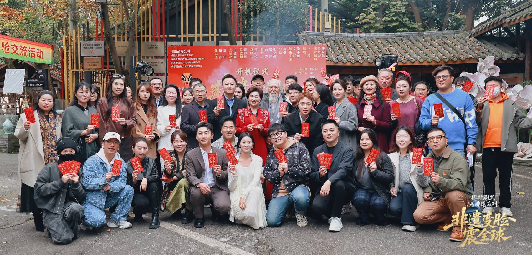 近日,位于成都市青羊区的百年文化老字号诗婢家打造的非遗主题微短剧《非遗变脸震全球》开机。这是目前国内首部拿到备案号的变脸题材竖屏短剧。