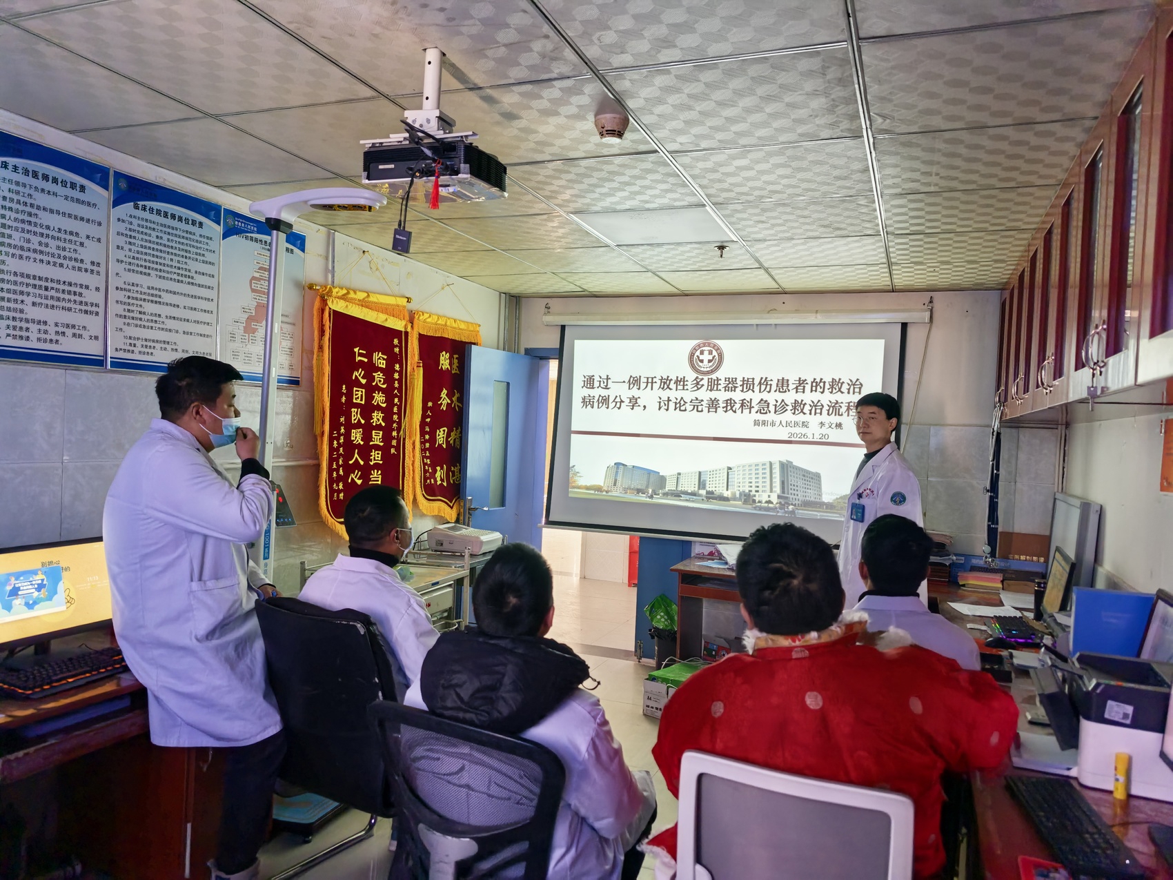 李文桃与科室医生开展业务培训。