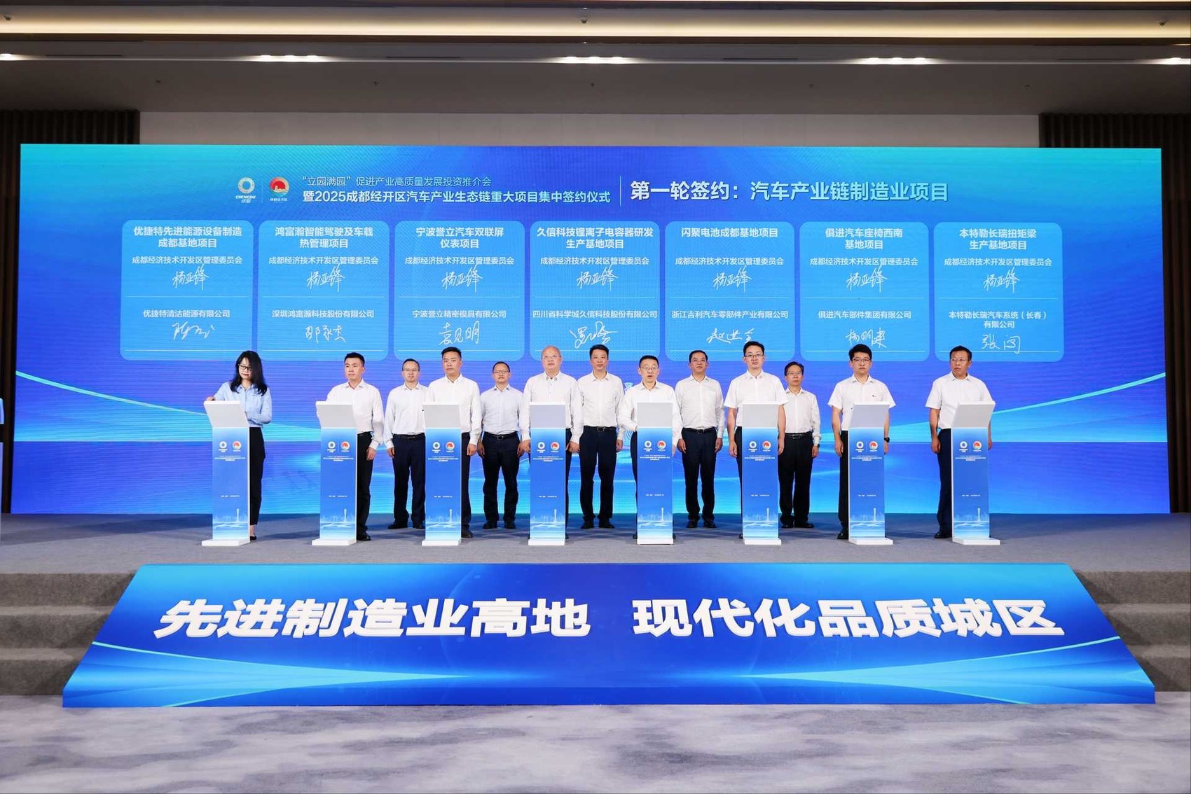 “此次集中签约是成都经开区实施‘立园满园’行动、推动政策体系落地落实、加快构建汽车产业生态圈的又一重要成果。”成都经开区相关负责人说,这些签约项目将从延伸产业链、补齐关键环节、丰富场景示范多个维度协同发力,充分发挥产业带动效应,助力区域产业建圈强链、构建现代化产业体系,为成都经开区汽车产业生态注入新动能、新活力。