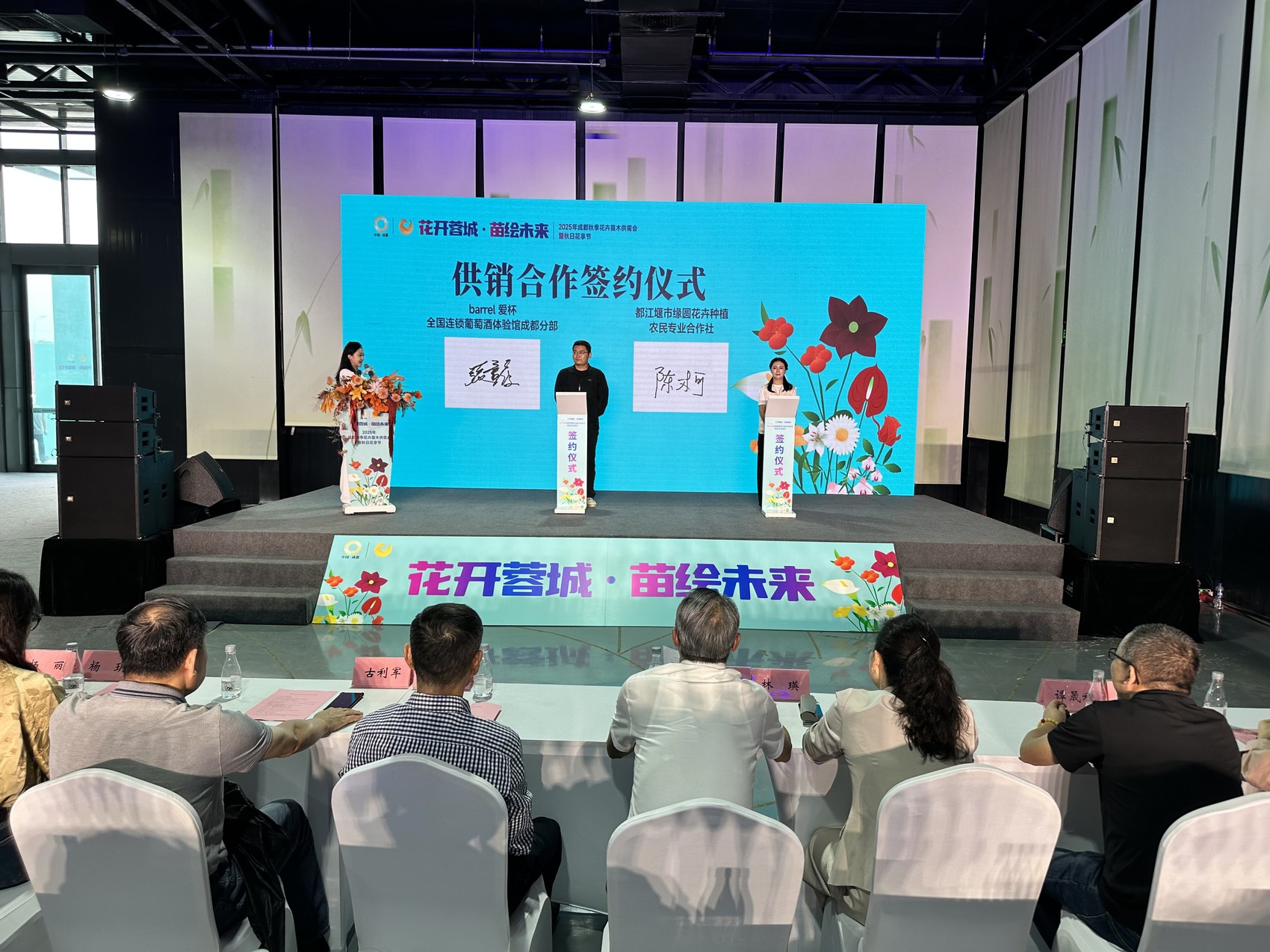 在签约仪式环节,都江堰市缘圆花卉种植农民专业合作社等6家企业现场达成产品直供及花饮产品的开发、商业空间布置等合作,涵盖产业链上下游协同及跨界资源整合,为成都市花卉苗木产业创新发展注入新动能。