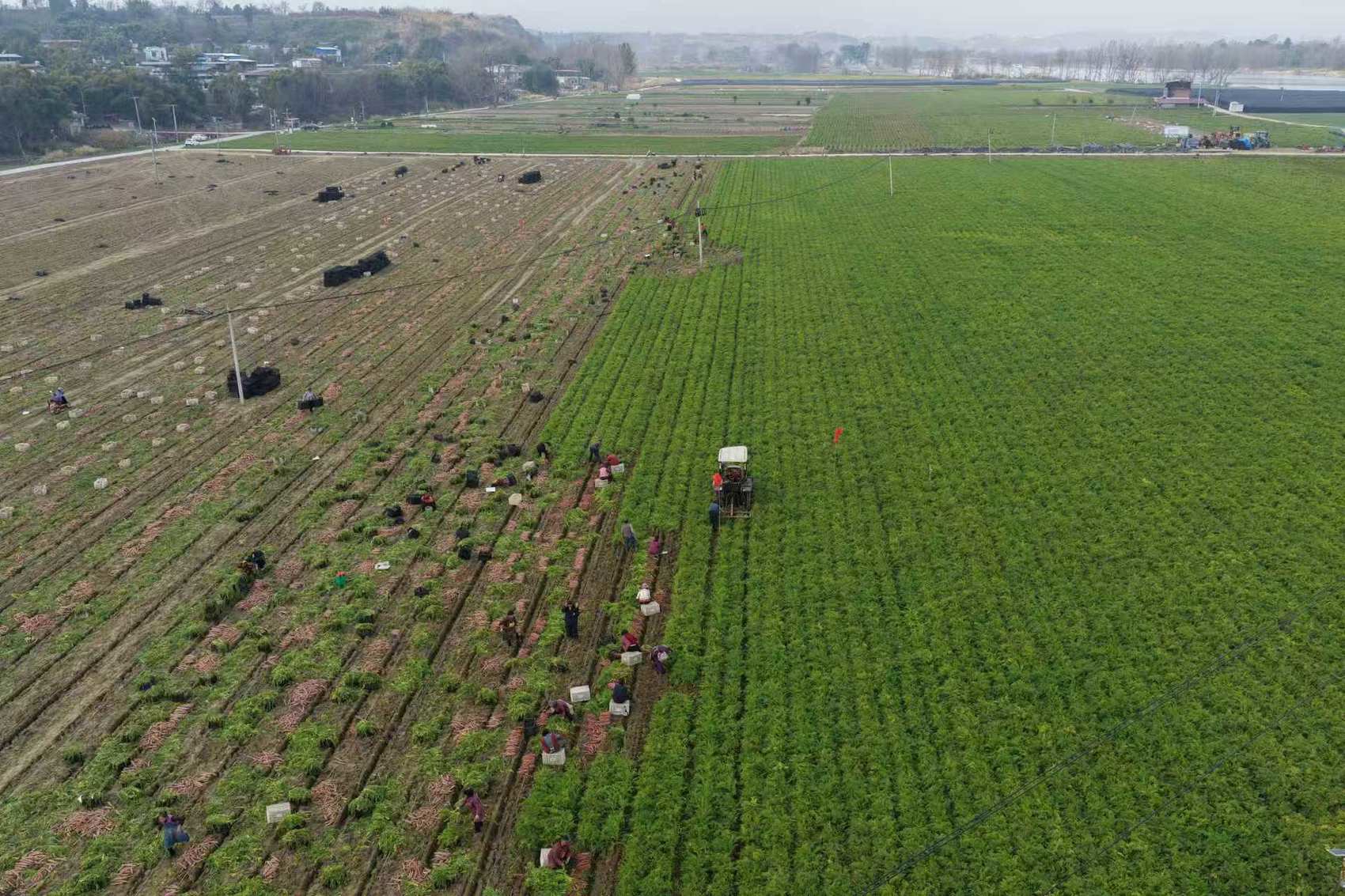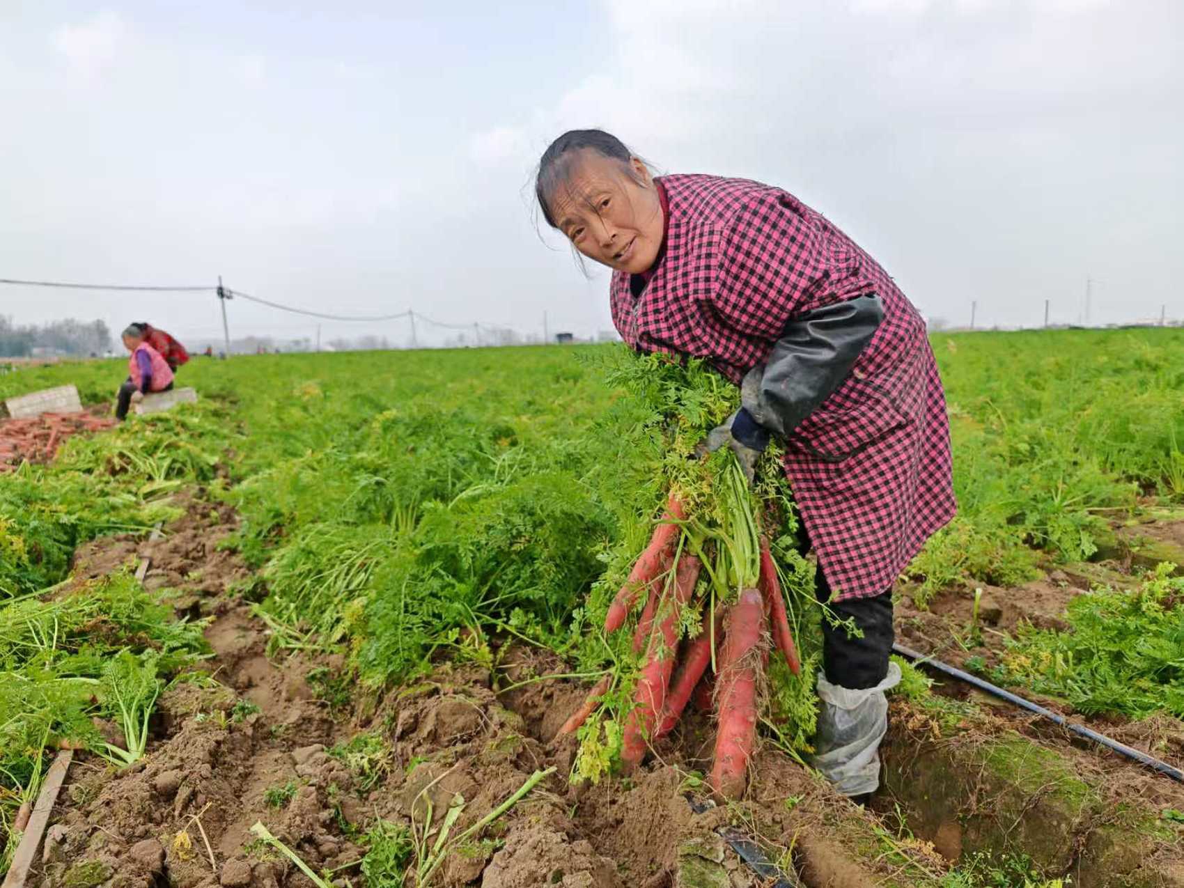 眼下,胡萝卜、圆根萝卜迎来集中采收期,预计总产量突破640万斤。“今年收成比往年都好!200多亩圆根萝卜亩产超1万斤,400多亩胡萝卜亩产也有8000斤,算下来又是一个丰收年。”成都市梁家家庭农场负责人梁强满脸笑容。