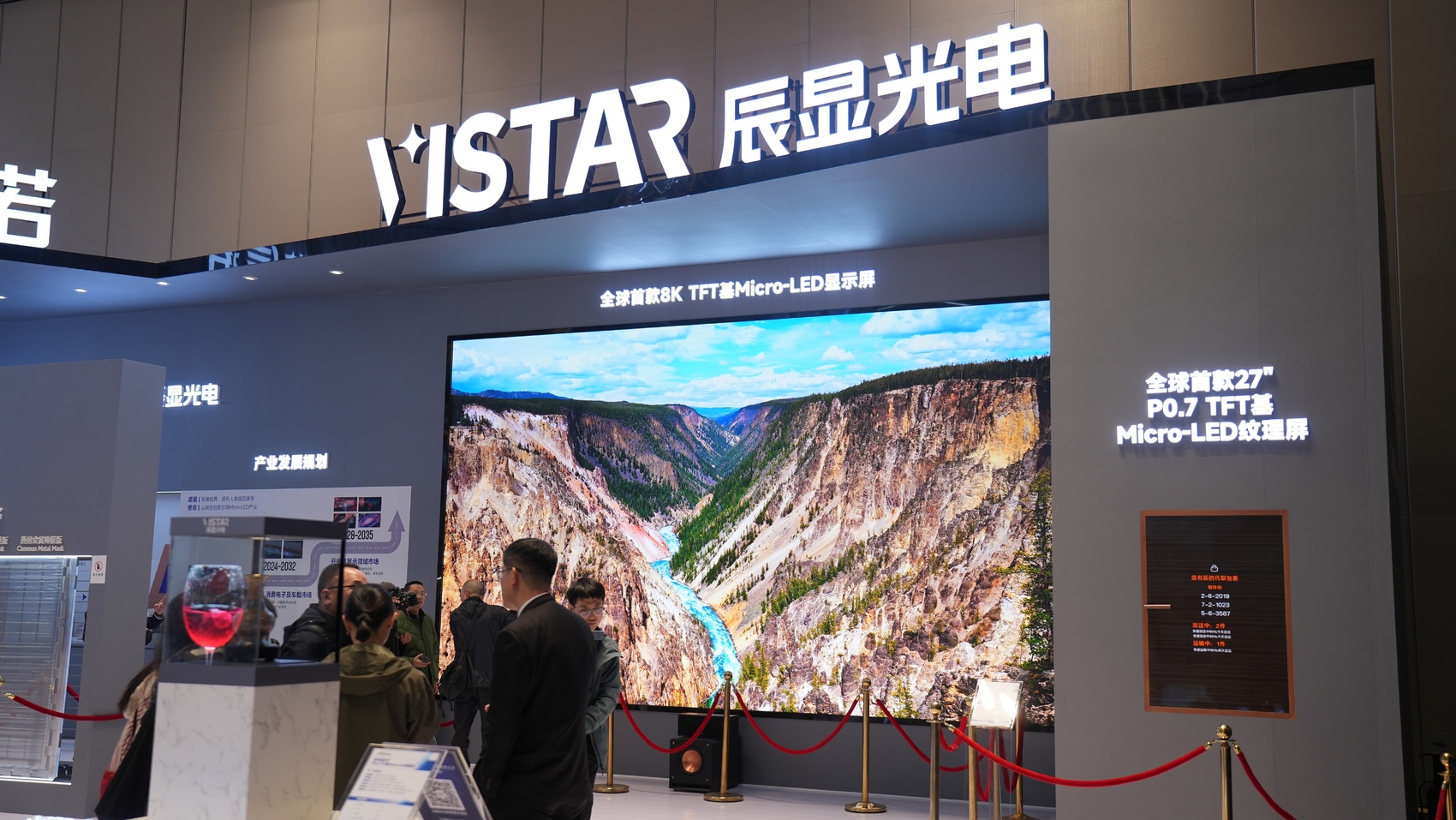 11月3日,在成都举行的2025世界显示产业创新发展大会上,成都辰显光电有限公司推出(下称:辰显光电)的全球首款270英寸8K TFT基Micro-LED(微型发光二极管)显示屏首次亮相,吸引不少与会者目光。