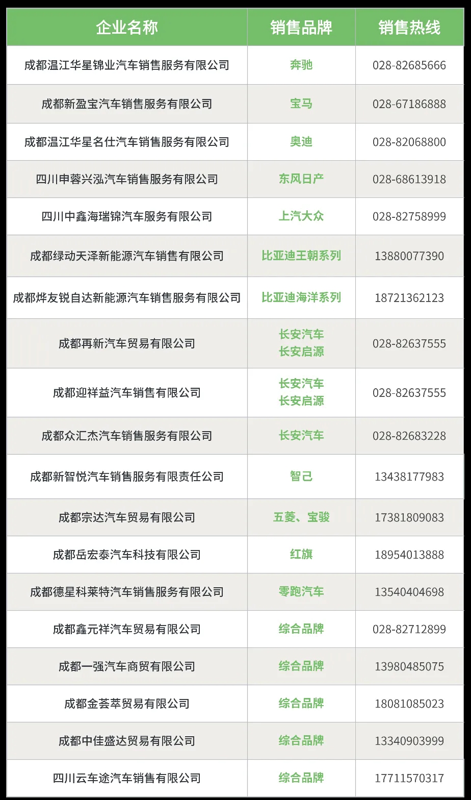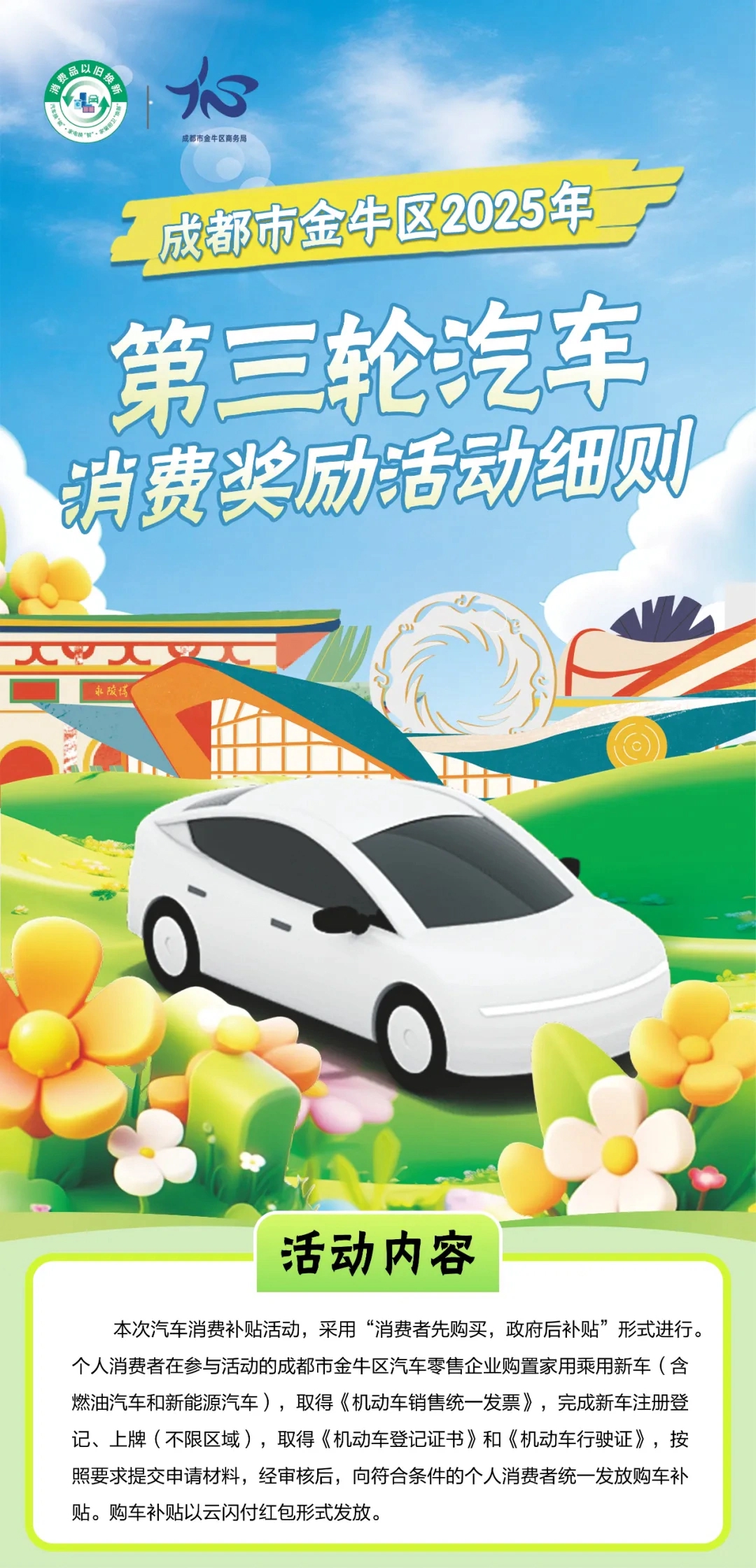 注意:“裸车价格”即《机动车销售统一发票》上载明的“不含税价”金额。该项补贴可以与国家、省市以旧换新政策以及成都市促消费奖励政策叠加享受。