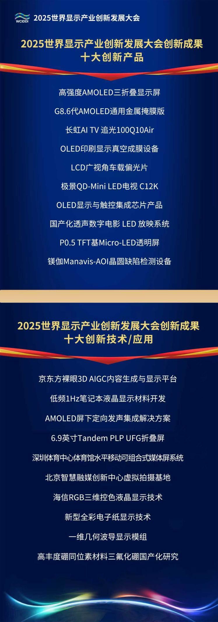 中国科学院院士欧阳钟灿介绍,为树立行业标杆、共享创新成果、营造良好产业生态,经多个国内外重点行业机构和单位推荐,并综合技术领先性、市场竞争性、功能适用性、创新独特性等指标,大会推选出十大创新产品、十大创新技术(应用),覆盖新型显示产业链各关键环节,涉及生产生活多个领域的创新应用,“反映了当下产业链协同创新和行业融合应用的最新水平。”