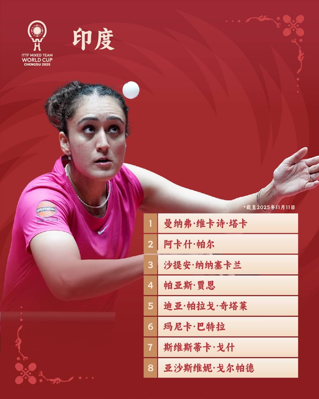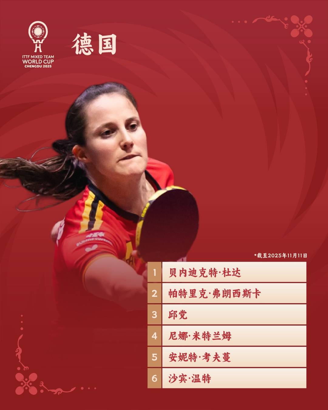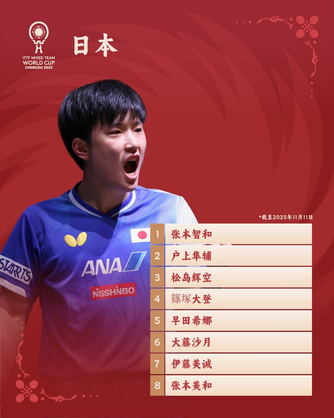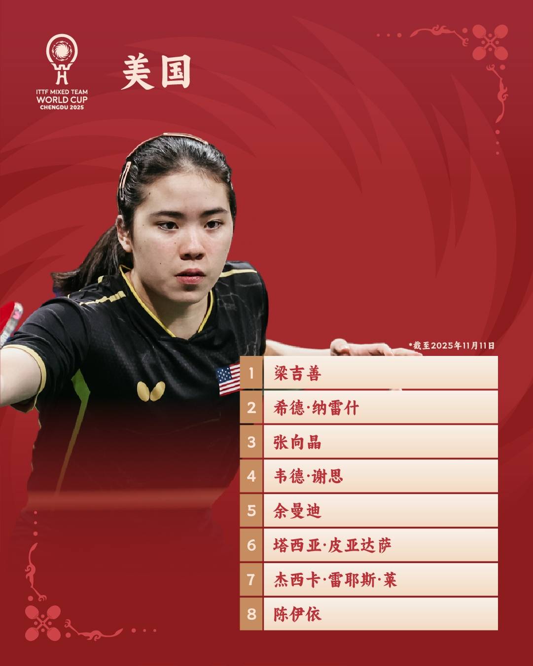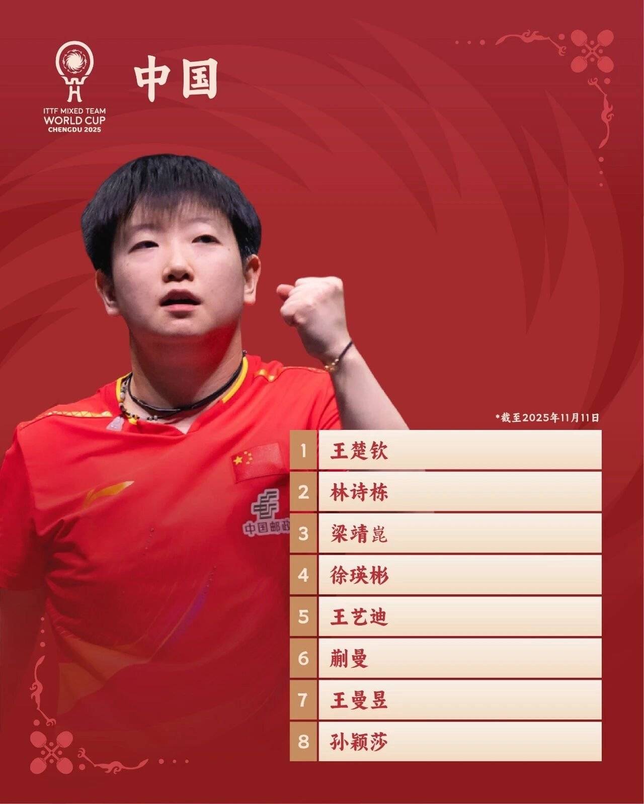 2025年成都国际乒联混合团体世界杯将于11月30日至12月7日在成都举行,冠军队将获得2500点世界排名积分。国际乒乓球联合会(ITTF)于今日正式公布参赛球员名单: