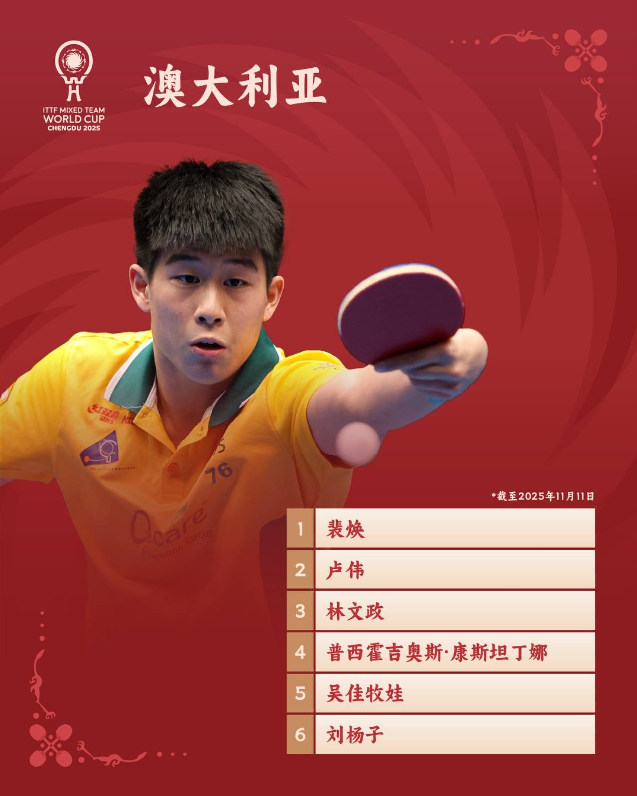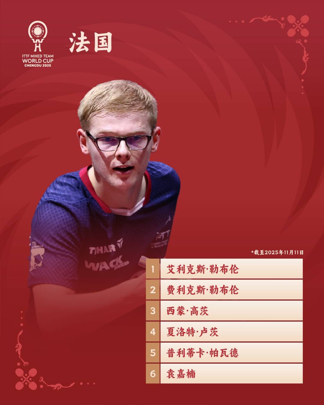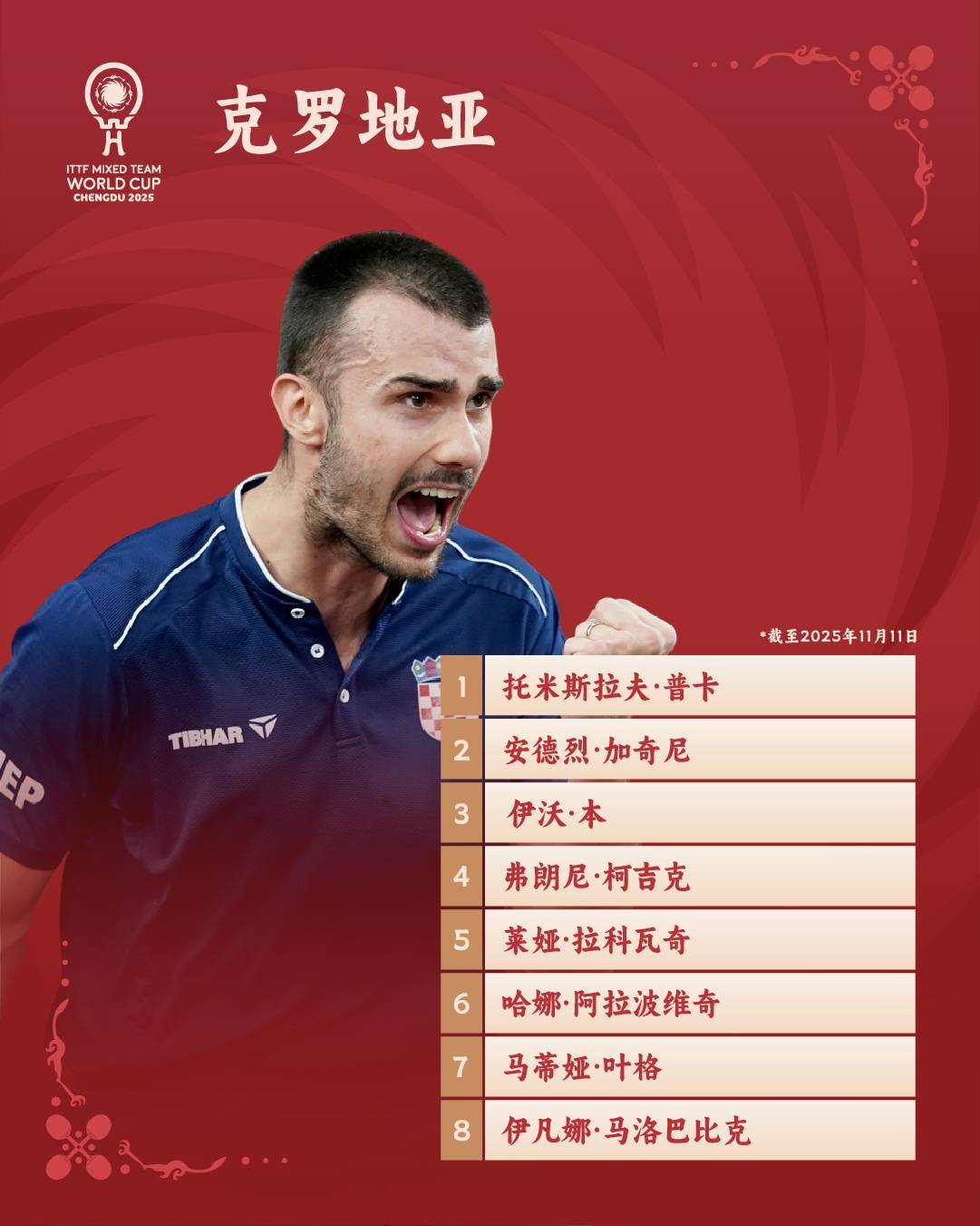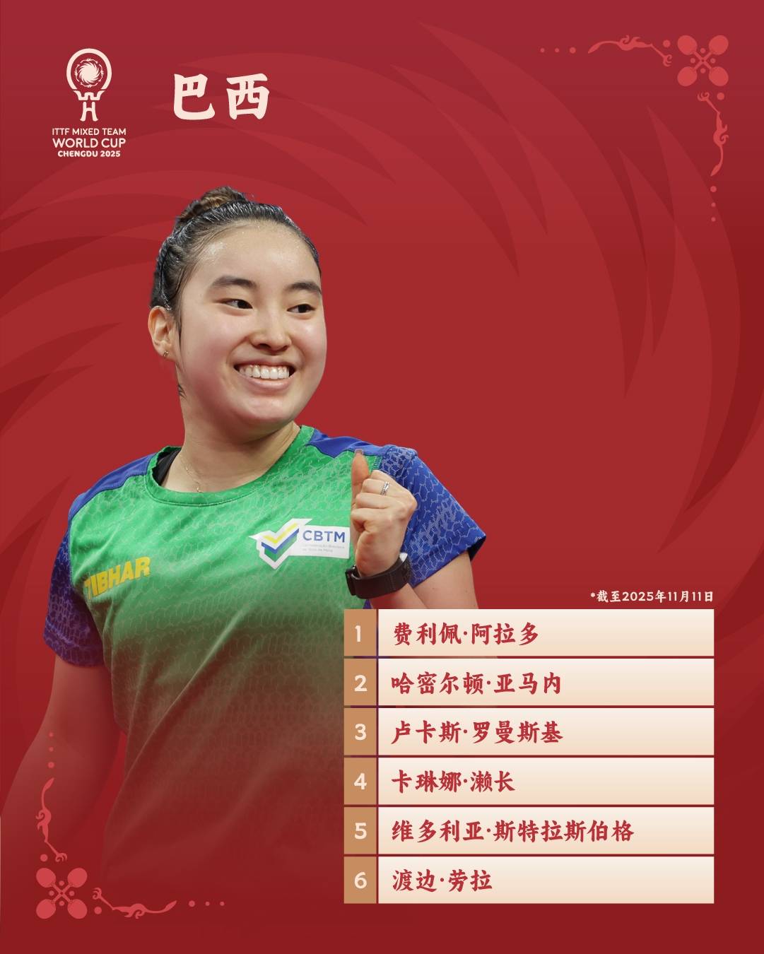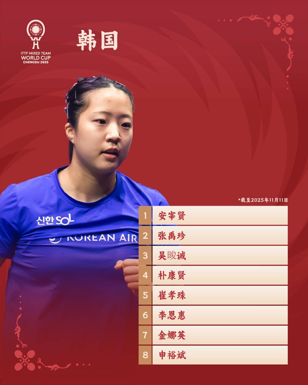 2025年成都国际乒联混合团体世界杯将于11月30日至12月7日在成都举行,冠军队将获得2500点世界排名积分。国际乒乓球联合会(ITTF)于今日正式公布参赛球员名单: