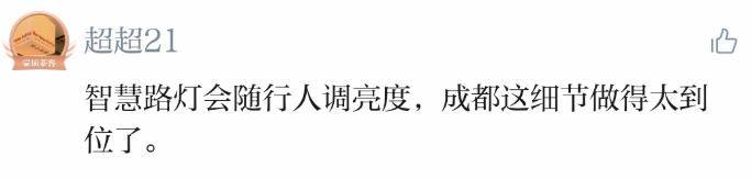 还有很多网友补充了大量稿件之外的公园城市细节。比如,网友“黑夜幽灵”说“三岔湖好多候鸟,红嘴鸥、白鹭一群群的,观鸟太治愈了。”网友“超超21”说,“智慧路灯会随行人调亮度,成都这细节做得太到位了。”