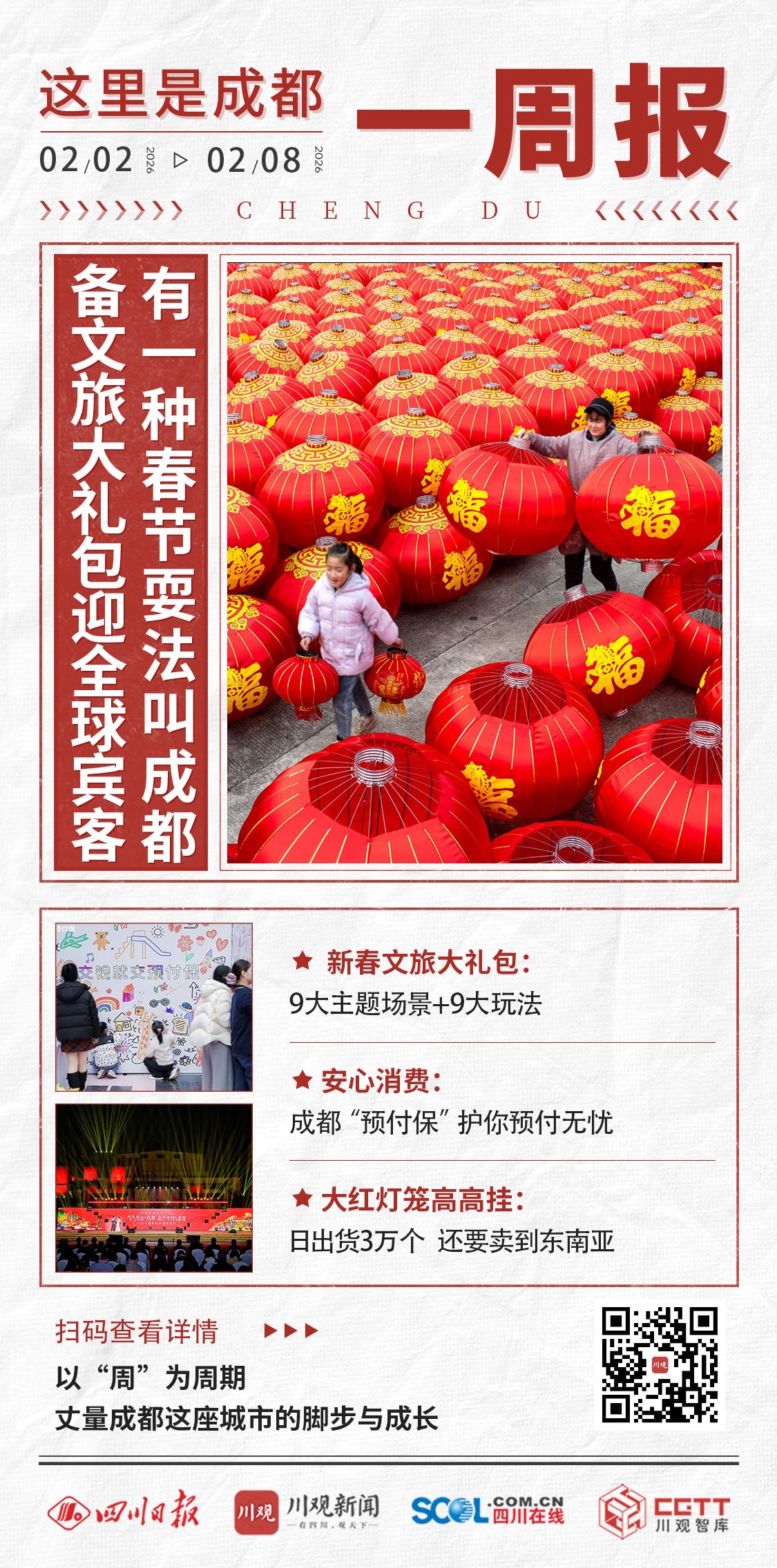 喜庆的春节,也是火红的“灯笼节”,承载着中国人家和万事兴的美好,也兑现蓉城人聪慧与勤劳的付出。