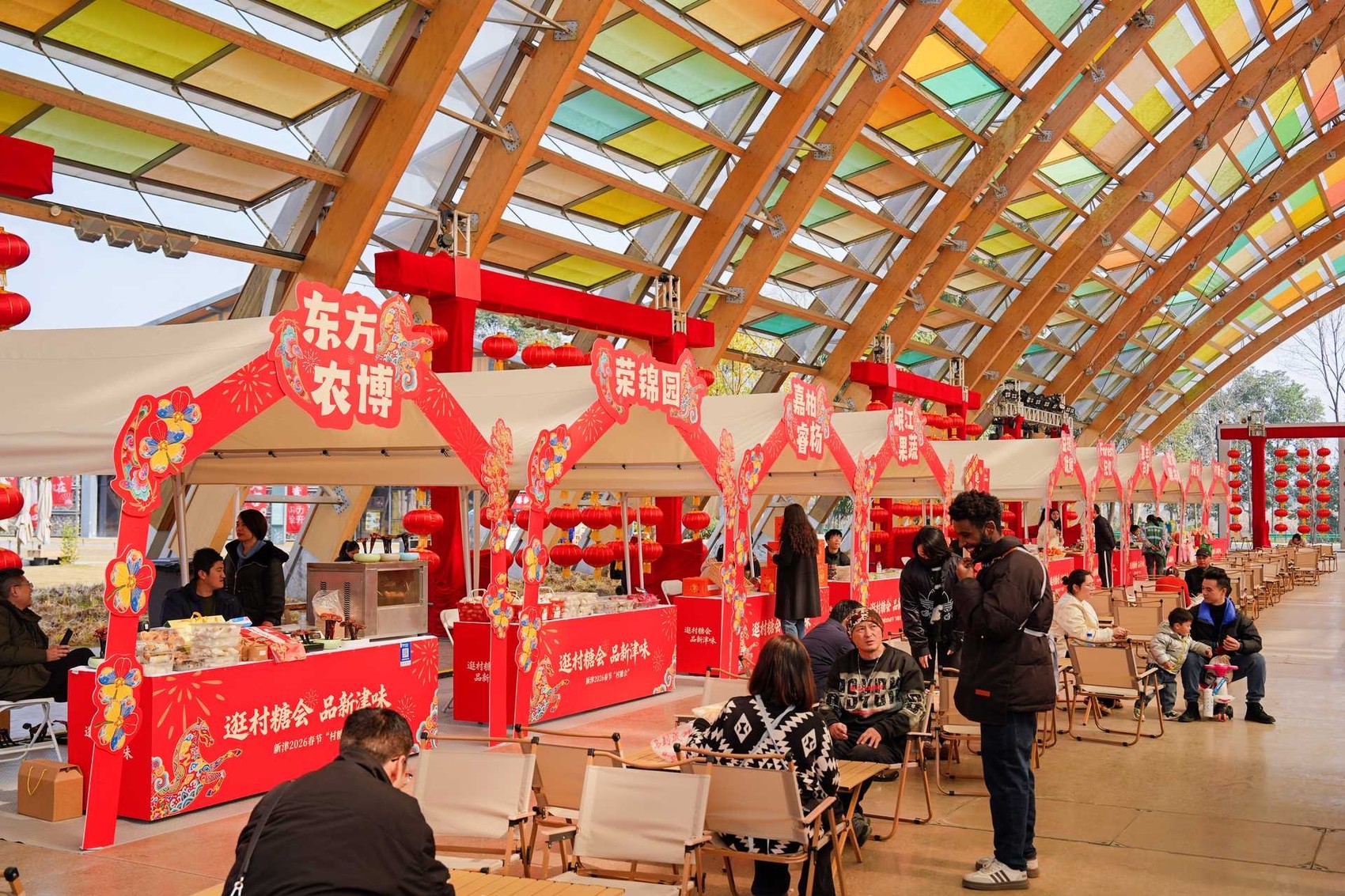 腊月二十四,南方小年。位于新津的成都市天府农业博览园,86个年货展位一字排开,人声鼎沸。