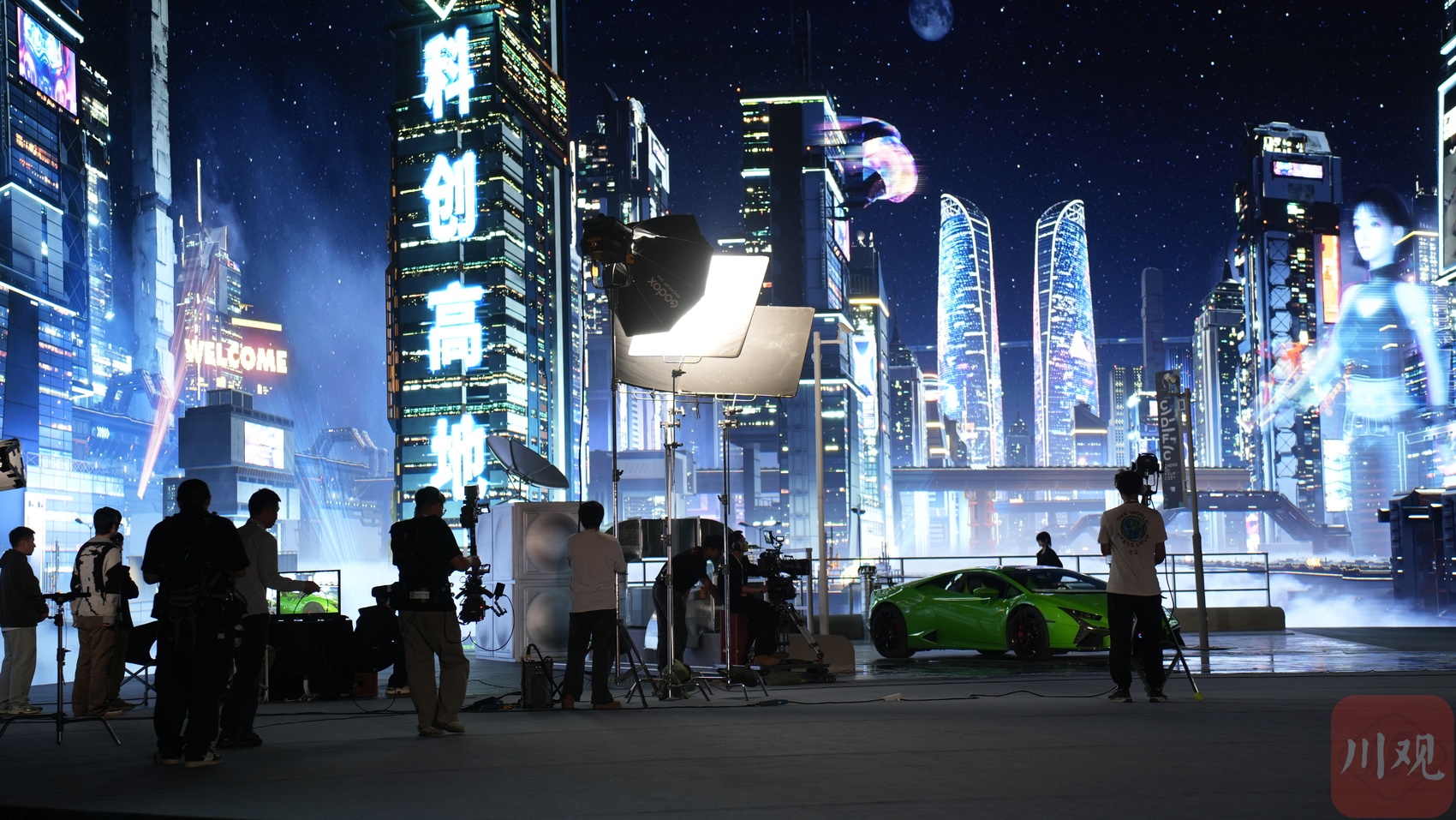 720平方米的LED弧形巨幕上,虚拟场景瞬间切换,演员穿梭在戈壁荒漠、城市地标、广袤草原等拍摄场景中。4月14日,成都市郫都区,一场颠覆想象的视觉盛宴拉开帷幕。